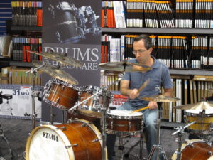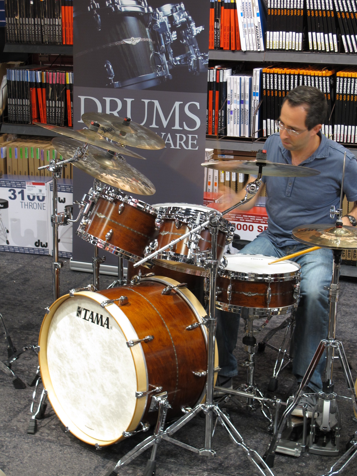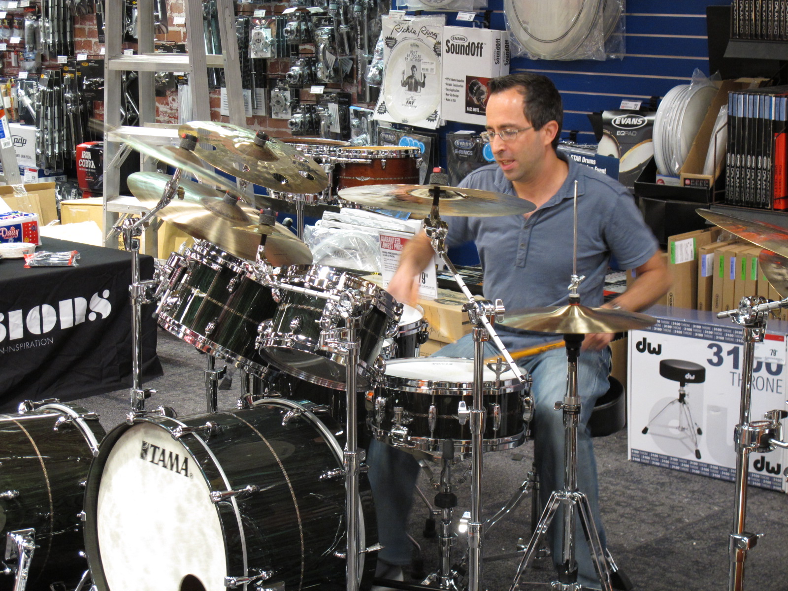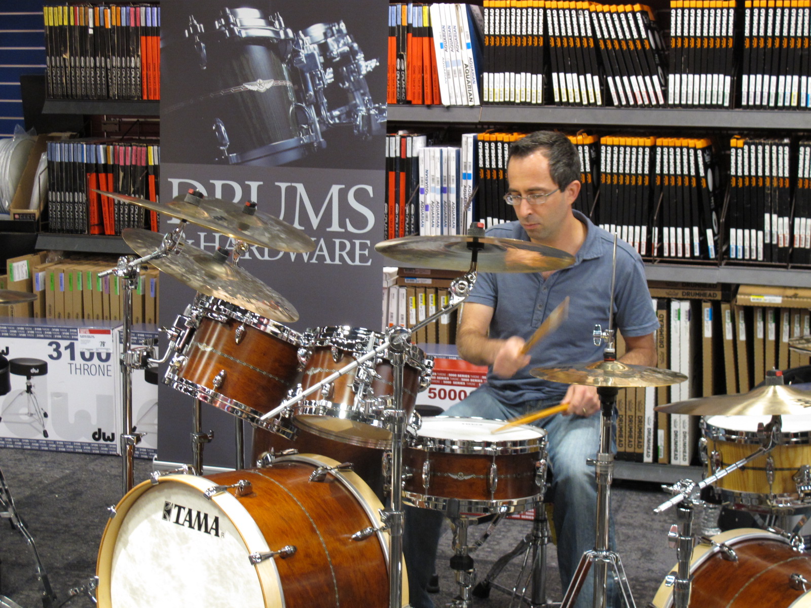 Joe performed at 4 events staged by Tama Drums to roll out their new high-end Star Drums. Held at 4 Guitar Center locations in the Northeast (Plymouth Meeting, PA; East Brunswick, NJ; New York City; and Springfield, NJ) these events were held in the form of loose clinics where Joe played both the maple and bubinga Star kits and then allowed attendees to try the drums. Tama Drums’ Terry Bissette spoke about the features and craftsmanship that go into these amazing drums. Everyone who attended the events was blown away by the rich, resonant, clear, and musical sound of these kits.