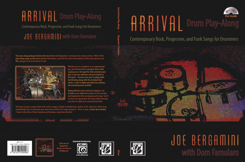 To coincide with his performance at PASIC 2013, Wizdom Media has released Joe Bergamini’s Arrival Drum Play-Along book/CD package. Consisting of songs that appeared on Joe’s 1996 critically-acclaimed debut CD Arrival, this package provides excellent play-along material for drummers in rock, funk, progressive, and contemporary pop styles. All the songs in this package were written by 4Front’s Zak Rizvi and co-produced by Dom Famularo and Joe. Like all Wizdom Media titles, the book will be available worldwide at physical and digital bookstores through Wizdom’s exclusive worldwide distributor, Alfred Music. The book comes with a data disc containing hi-res MP3 mixes of all songs with drums, minus drums with click, and minus drums without click.