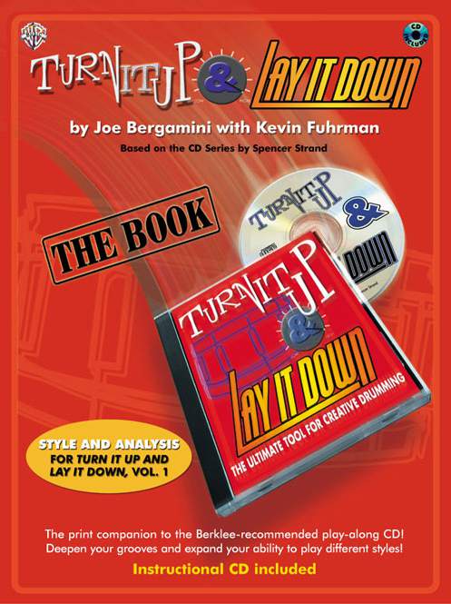 Drummers and teachers worldwide have been praising and working with the Turn It Up & Lay It Down series of play-along bass CDs produced by Spencer Strand. Now, the definitive educational companion has arrived, a method book that offers you a plethora of groove options to perform with each track in all of the various styles from the CD. Plus, you’ll see how to use Turn It Up & Lay It Down in conjunction with dozens of drum books with a one-of-a-kind cross-reference section in each chapter. Also included throughout the book are sidebars that highlight the inspirations for these grooves, such as Steve Gadd, Bernard Purdie, and Jeff Porcaro. In addition, 10 of the best-known drum educators have ended their unique grooves written specifically for this book.